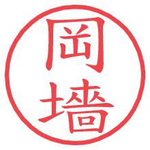 [朱肉の色]を選び、入力窓に“岡墻”と入力して[生成]ボタンを押すと、印影が更新され、リンクから電子印鑑(デジタル印影)がダウンロードできます。 電子印鑑「岡墻」の作り方文字表示が変なときや、文字バランスが悪いときは[字形切替]のチェックボックスでON/OFFを切り替え[生成]しなおしてください。 生成される画像は通常の印影「岡墻.png」と、にじみを表現した少し太めの印影「岡墻B.png」の背面透過PNG形式2種と、鮮明なPDF形式の印影「岡墻.pdf」の計3種類です。 朱肉の微妙な色の違いを7色で表現しました。デフォルト(左端)は、JISが定めた朱肉の色のマンセル値(7.5R 5/14)をRGB値(217,66,54)に変換したものになっています。 「電子透かし」にチェックを入れて[生成]ボタンを押すと、タイムスタンプを電子透かしとして埋め込んだセキュアな電子印鑑が作れます。詳細は別ページの「タイムスタンプと電子透かし」でご覧ください。 岡墻さんの日付印が作れます。「日付スタンプメーカー」は、社内向けの書類に利用されることの多い日付印(データ印)が無料で作れるWebアプリケーションです。中段に日付が入り、上段と下段は、ともに8文字まで文字が入ります。 ![]() 古代文字で落款印が作れます。「落款スタンプメーカー」で作品を引き立たせる落款印が作れます。