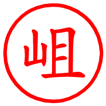 [朱肉の色]を選び、入力窓に“岨”と入力して[生成]ボタンを押すと、印影が更新され、リンクから電子印鑑(デジタル印影)がダウンロードできます。 電子印鑑「岨」の作り方文字表示が変なときや、文字バランスが悪いときは[字形切替]のチェックボックスでON/OFFを切り替え[生成]しなおしてください。 生成される画像は通常の印影「岨.png」と、にじみを表現した少し太めの印影「岨B.png」の背面透過PNG形式2種と、鮮明なPDF形式の印影「岨.pdf」の計3種類です。 朱肉の微妙な色の違いを7色で表現しました。デフォルト(左端)は、JISが定めた朱肉の色のマンセル値(7.5R 5/14)をRGB値(217,66,54)に変換したものになっています。 「電子透かし」にチェックを入れて[生成]ボタンを押すと、タイムスタンプを透かしとして埋め込んだセキュアな電子印鑑が作れます。詳細は別ページの「電子透かしとタイムスタンプ」でご覧ください。 岨さんの日付印が作れます。「日付スタンプメーカー」は、社内向けの書類に利用されることの多い日付印(データ印)が無料で作れるWebアプリケーションです。中段に日付が入り、上段と下段は、ともに8文字まで文字が入ります。 ![]() 古代文字で落款印が作れます。「落款スタンプメーカー」で作品を引き立たせる落款印が作れます。