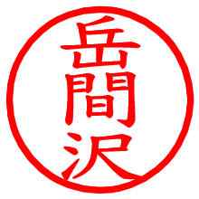 [朱肉の色]を選び、入力窓に“岳間沢”と入力して[生成]ボタンを押すと、印影が更新され、リンクから電子印鑑(デジタル印影)がダウンロードできます。 電子印鑑「岳間沢」の作り方文字表示が変なときや、文字バランスが悪いときは[字形切替]のチェックボックスでON/OFFを切り替え[生成]しなおしてください。 生成される画像は通常の印影「岳間沢.png」と、にじみを表現した少し太めの印影「岳間沢B.png」の背面透過PNG形式2種と、鮮明なPDF形式の印影「岳間沢.pdf」の計3種類です。 朱肉の微妙な色の違いを7色で表現しました。デフォルト(左端)は、JISが定めた朱肉の色のマンセル値(7.5R 5/14)をRGB値(217,66,54)に変換したものになっています。 「電子透かし」にチェックを入れて[生成]ボタンを押すと、タイムスタンプを電子透かしとして埋め込んだセキュアな電子印鑑が作れます。詳細は別ページの「タイムスタンプと電子透かし」でご覧ください。 岳間沢さんの日付印が作れます。「日付スタンプメーカー」は、社内向けの書類に利用されることの多い日付印(データ印)が無料で作れるWebアプリケーションです。中段に日付が入り、上段と下段は、ともに8文字まで文字が入ります。 ![]() 古代文字で落款印が作れます。「落款スタンプメーカー」で作品を引き立たせる落款印が作れます。
