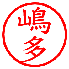 [朱肉の色]を選び、入力窓に“嶋多”と入力して[生成]ボタンを押すと、印影が更新され、リンクから電子印鑑(デジタル印影)がダウンロードできます。 電子印鑑「嶋多」の作り方文字表示が変なときや、文字バランスが悪いときは[字形切替]のチェックボックスでON/OFFを切り替え[生成]しなおしてください。 生成される画像は通常の印影「嶋多.png」と、にじみを表現した少し太めの印影「嶋多B.png」の背面透過PNG形式2種と、鮮明なPDF形式の印影「嶋多.pdf」の計3種類です。 朱肉の微妙な色の違いを7色で表現しました。デフォルト(左端)は、JISが定めた朱肉の色のマンセル値(7.5R 5/14)をRGB値(217,66,54)に変換したものになっています。 「電子透かし」にチェックを入れて[生成]ボタンを押すと、タイムスタンプを電子透かしとして埋め込んだセキュアな電子印鑑が作れます。詳細は別ページの「タイムスタンプと電子透かし」でご覧ください。 嶋多さんの日付印が作れます。「日付スタンプメーカー」は、社内向けの書類に利用されることの多い日付印(データ印)が無料で作れるWebアプリケーションです。中段に日付が入り、上段と下段は、ともに8文字まで文字が入ります。 ![]() 古代文字で落款印が作れます。「落款スタンプメーカー」で作品を引き立たせる落款印が作れます。