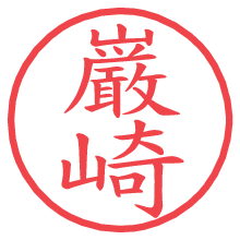 [朱肉の色]を選び、入力窓に“巌崎”と入力して[生成]ボタンを押すと、印影が更新され、リンクから電子印鑑(デジタル印影)がダウンロードできます。 電子印鑑「巌崎」の作り方文字表示が変なときや、文字バランスが悪いときは[字形切替]のチェックボックスでON/OFFを切り替え[生成]しなおしてください。 生成される画像は通常の印影「巌崎.png」と、にじみを表現した少し太めの印影「巌崎B.png」の背面透過PNG形式2種と、鮮明なPDF形式の印影「巌崎.pdf」の計3種類です。 朱肉の微妙な色の違いを7色で表現しました。デフォルト(左端)は、JISが定めた朱肉の色のマンセル値(7.5R 5/14)をRGB値(217,66,54)に変換したものになっています。 「電子透かし」にチェックを入れて[生成]ボタンを押すと、タイムスタンプを電子透かしとして埋め込んだセキュアな電子印鑑が作れます。詳細は別ページの「タイムスタンプと電子透かし」でご覧ください。 巌崎さんの日付印が作れます。「日付スタンプメーカー」は、社内向けの書類に利用されることの多い日付印(データ印)が無料で作れるWebアプリケーションです。中段に日付が入り、上段と下段は、ともに8文字まで文字が入ります。 ![]() 古代文字で落款印が作れます。「落款スタンプメーカー」で作品を引き立たせる落款印が作れます。