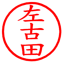 [朱肉の色]を選び、入力窓に“左古田”と入力して[生成]ボタンを押すと、印影が更新され、リンクから電子印鑑(デジタル印影)がダウンロードできます。 電子印鑑「左古田」の作り方文字表示が変なときや、文字バランスが悪いときは[字形切替]のチェックボックスでON/OFFを切り替え[生成]しなおしてください。 生成される画像は通常の印影「左古田.png」と、にじみを表現した少し太めの印影「左古田B.png」の背面透過PNG形式2種と、鮮明なPDF形式の印影「左古田.pdf」の計3種類です。 朱肉の微妙な色の違いを7色で表現しました。デフォルト(左端)は、JISが定めた朱肉の色のマンセル値(7.5R 5/14)をRGB値(217,66,54)に変換したものになっています。 「電子透かし」にチェックを入れて[生成]ボタンを押すと、タイムスタンプを電子透かしとして埋め込んだセキュアな電子印鑑が作れます。詳細は別ページの「タイムスタンプと電子透かし」でご覧ください。 左古田さんの日付印が作れます。「日付スタンプメーカー」は、社内向けの書類に利用されることの多い日付印(データ印)が無料で作れるWebアプリケーションです。中段に日付が入り、上段と下段は、ともに8文字まで文字が入ります。 ![]() 古代文字で落款印が作れます。「落款スタンプメーカー」で作品を引き立たせる落款印が作れます。