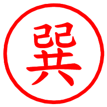 [朱肉の色]を選び、入力窓に“巽”と入力して[生成]ボタンを押すと、印影が更新され、リンクから電子印鑑(デジタル印影)がダウンロードできます。 電子印鑑「巽」の作り方文字表示が変なときや、文字バランスが悪いときは[字形切替]のチェックボックスでON/OFFを切り替え[生成]しなおしてください。 生成される画像は通常の印影「巽.png」と、にじみを表現した少し太めの印影「巽B.png」の背面透過PNG形式2種と、鮮明なPDF形式の印影「巽.pdf」の計3種類です。 朱肉の微妙な色の違いを7色で表現しました。デフォルト(左端)は、JISが定めた朱肉の色のマンセル値(7.5R 5/14)をRGB値(217,66,54)に変換したものになっています。 「電子透かし」にチェックを入れて[生成]ボタンを押すと、タイムスタンプを透かしとして埋め込んだセキュアな電子印鑑が作れます。詳細は別ページの「電子透かしとタイムスタンプ」でご覧ください。 巽さんの日付印が作れます。「日付スタンプメーカー」は、社内向けの書類に利用されることの多い日付印(データ印)が無料で作れるWebアプリケーションです。中段に日付が入り、上段と下段は、ともに8文字まで文字が入ります。 ![]() 古代文字で落款印が作れます。「落款スタンプメーカー」で作品を引き立たせる落款印が作れます。