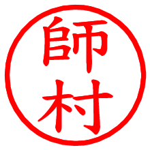 [朱肉の色]を選び、入力窓に“師村”と入力して[生成]ボタンを押すと、印影が更新され、リンクから電子印鑑(デジタル印影)がダウンロードできます。 電子印鑑「師村」の作り方文字表示が変なときや、文字バランスが悪いときは[字形切替]のチェックボックスでON/OFFを切り替え[生成]しなおしてください。 生成される画像は通常の印影「師村.png」と、にじみを表現した少し太めの印影「師村B.png」の背面透過PNG形式2種と、鮮明なPDF形式の印影「師村.pdf」の計3種類です。 朱肉の微妙な色の違いを7色で表現しました。デフォルト(左端)は、JISが定めた朱肉の色のマンセル値(7.5R 5/14)をRGB値(217,66,54)に変換したものになっています。 「電子透かし」にチェックを入れて[生成]ボタンを押すと、タイムスタンプを電子透かしとして埋め込んだセキュアな電子印鑑が作れます。詳細は別ページの「タイムスタンプと電子透かし」でご覧ください。 師村さんの日付印が作れます。「日付スタンプメーカー」は、社内向けの書類に利用されることの多い日付印(データ印)が無料で作れるWebアプリケーションです。中段に日付が入り、上段と下段は、ともに8文字まで文字が入ります。 ![]() 古代文字で落款印が作れます。「落款スタンプメーカー」で作品を引き立たせる落款印が作れます。
