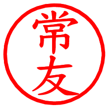 [朱肉の色]を選び、入力窓に“常友”と入力して[生成]ボタンを押すと、印影が更新され、リンクから電子印鑑(デジタル印影)がダウンロードできます。 電子印鑑「常友」の作り方文字表示が変なときや、文字バランスが悪いときは[字形切替]のチェックボックスでON/OFFを切り替え[生成]しなおしてください。 生成される画像は通常の印影「常友.png」と、にじみを表現した少し太めの印影「常友B.png」の背面透過PNG形式2種と、鮮明なPDF形式の印影「常友.pdf」の計3種類です。 朱肉の微妙な色の違いを7色で表現しました。デフォルト(左端)は、JISが定めた朱肉の色のマンセル値(7.5R 5/14)をRGB値(217,66,54)に変換したものになっています。 「電子透かし」にチェックを入れて[生成]ボタンを押すと、タイムスタンプを透かしとして埋め込んだセキュアな電子印鑑が作れます。詳細は別ページの「電子透かしとタイムスタンプ」でご覧ください。 常友さんの日付印が作れます。「日付スタンプメーカー」は、社内向けの書類に利用されることの多い日付印(データ印)が無料で作れるWebアプリケーションです。中段に日付が入り、上段と下段は、ともに8文字まで文字が入ります。 ![]() 古代文字で落款印が作れます。「落款スタンプメーカー」で作品を引き立たせる落款印が作れます。
