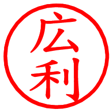 [朱肉の色]を選び、入力窓に“広利”と入力して[生成]ボタンを押すと、印影が更新され、リンクから電子印鑑(デジタル印影)がダウンロードできます。 電子印鑑「広利」の作り方文字表示が変なときや、文字バランスが悪いときは[字形切替]のチェックボックスでON/OFFを切り替え[生成]しなおしてください。 生成される画像は通常の印影「広利.png」と、にじみを表現した少し太めの印影「広利B.png」の背面透過PNG形式2種と、鮮明なPDF形式の印影「広利.pdf」の計3種類です。 朱肉の微妙な色の違いを7色で表現しました。デフォルト(左端)は、JISが定めた朱肉の色のマンセル値(7.5R 5/14)をRGB値(217,66,54)に変換したものになっています。 「電子透かし」にチェックを入れて[生成]ボタンを押すと、タイムスタンプを電子透かしとして埋め込んだセキュアな電子印鑑が作れます。詳細は別ページの「タイムスタンプと電子透かし」でご覧ください。 広利さんの日付印が作れます。「日付スタンプメーカー」は、社内向けの書類に利用されることの多い日付印(データ印)が無料で作れるWebアプリケーションです。中段に日付が入り、上段と下段は、ともに8文字まで文字が入ります。 ![]() 古代文字で落款印が作れます。「落款スタンプメーカー」で作品を引き立たせる落款印が作れます。