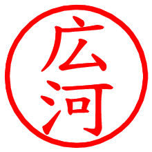 [朱肉の色]を選び、入力窓に“広河”と入力して[生成]ボタンを押すと、印影が更新され、リンクから電子印鑑(デジタル印影)がダウンロードできます。 電子印鑑「広河」の作り方文字表示が変なときや、文字バランスが悪いときは[字形切替]のチェックボックスでON/OFFを切り替え[生成]しなおしてください。 生成される画像は通常の印影「広河.png」と、にじみを表現した少し太めの印影「広河B.png」の背面透過PNG形式2種と、鮮明なPDF形式の印影「広河.pdf」の計3種類です。 朱肉の微妙な色の違いを7色で表現しました。デフォルト(左端)は、JISが定めた朱肉の色のマンセル値(7.5R 5/14)をRGB値(217,66,54)に変換したものになっています。 「電子透かし」にチェックを入れて[生成]ボタンを押すと、タイムスタンプを電子透かしとして埋め込んだセキュアな電子印鑑が作れます。詳細は別ページの「タイムスタンプと電子透かし」でご覧ください。 広河さんの日付印が作れます。「日付スタンプメーカー」は、社内向けの書類に利用されることの多い日付印(データ印)が無料で作れるWebアプリケーションです。中段に日付が入り、上段と下段は、ともに8文字まで文字が入ります。 ![]() 古代文字で落款印が作れます。「落款スタンプメーカー」で作品を引き立たせる落款印が作れます。