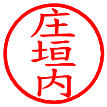 [朱肉の色]を選び、入力窓に“庄垣内”と入力して[生成]ボタンを押すと、印影が更新され、リンクから電子印鑑(デジタル印影)がダウンロードできます。 電子印鑑「庄垣内」の作り方文字表示が変なときや、文字バランスが悪いときは[字形切替]のチェックボックスでON/OFFを切り替え[生成]しなおしてください。 生成される画像は通常の印影「庄垣内.png」と、にじみを表現した少し太めの印影「庄垣内B.png」の背面透過PNG形式2種と、鮮明なPDF形式の印影「庄垣内.pdf」の計3種類です。 朱肉の微妙な色の違いを7色で表現しました。デフォルト(左端)は、JISが定めた朱肉の色のマンセル値(7.5R 5/14)をRGB値(217,66,54)に変換したものになっています。 「電子透かし」にチェックを入れて[生成]ボタンを押すと、タイムスタンプを電子透かしとして埋め込んだセキュアな電子印鑑が作れます。詳細は別ページの「タイムスタンプと電子透かし」でご覧ください。 庄垣内さんの日付印が作れます。「日付スタンプメーカー」は、社内向けの書類に利用されることの多い日付印(データ印)が無料で作れるWebアプリケーションです。中段に日付が入り、上段と下段は、ともに8文字まで文字が入ります。 ![]() 古代文字で落款印が作れます。「落款スタンプメーカー」で作品を引き立たせる落款印が作れます。