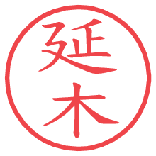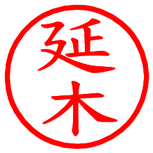 [朱肉の色]を選び、入力窓に“延木”と入力して[生成]ボタンを押すと、印影が更新され、リンクから電子印鑑(デジタル印影)がダウンロードできます。 電子印鑑「延木」の作り方文字表示が変なときや、文字バランスが悪いときは[字形切替]のチェックボックスでON/OFFを切り替え[生成]しなおしてください。 生成される画像は通常の印影「延木.png」と、にじみを表現した少し太めの印影「延木B.png」の背面透過PNG形式2種と、鮮明なPDF形式の印影「延木.pdf」の計3種類です。 朱肉の微妙な色の違いを7色で表現しました。デフォルト(左端)は、JISが定めた朱肉の色のマンセル値(7.5R 5/14)をRGB値(217,66,54)に変換したものになっています。 「電子透かし」にチェックを入れて[生成]ボタンを押すと、タイムスタンプを電子透かしとして埋め込んだセキュアな電子印鑑が作れます。詳細は別ページの「タイムスタンプと電子透かし」でご覧ください。 延木さんの日付印が作れます。「日付スタンプメーカー」は、社内向けの書類に利用されることの多い日付印(データ印)が無料で作れるWebアプリケーションです。中段に日付が入り、上段と下段は、ともに8文字まで文字が入ります。 ![]() 古代文字で落款印が作れます。「落款スタンプメーカー」で作品を引き立たせる落款印が作れます。