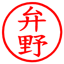 [朱肉の色]を選び、入力窓に“弁野”と入力して[生成]ボタンを押すと、印影が更新され、リンクから電子印鑑(デジタル印影)がダウンロードできます。 電子印鑑「弁野」の作り方文字表示が変なときや、文字バランスが悪いときは[字形切替]のチェックボックスでON/OFFを切り替え[生成]しなおしてください。 生成される画像は通常の印影「弁野.png」と、にじみを表現した少し太めの印影「弁野B.png」の背面透過PNG形式2種と、鮮明なPDF形式の印影「弁野.pdf」の計3種類です。 朱肉の微妙な色の違いを7色で表現しました。デフォルト(左端)は、JISが定めた朱肉の色のマンセル値(7.5R 5/14)をRGB値(217,66,54)に変換したものになっています。 「電子透かし」にチェックを入れて[生成]ボタンを押すと、タイムスタンプを電子透かしとして埋め込んだセキュアな電子印鑑が作れます。詳細は別ページの「タイムスタンプと電子透かし」でご覧ください。 弁野さんの日付印が作れます。「日付スタンプメーカー」は、社内向けの書類に利用されることの多い日付印(データ印)が無料で作れるWebアプリケーションです。中段に日付が入り、上段と下段は、ともに8文字まで文字が入ります。 ![]() 古代文字で落款印が作れます。「落款スタンプメーカー」で作品を引き立たせる落款印が作れます。