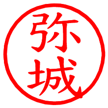 [朱肉の色]を選び、入力窓に“弥城”と入力して[生成]ボタンを押すと、印影が更新され、リンクから電子印鑑(デジタル印影)がダウンロードできます。 電子印鑑「弥城」の作り方文字表示が変なときや、文字バランスが悪いときは[字形切替]のチェックボックスでON/OFFを切り替え[生成]しなおしてください。 生成される画像は通常の印影「弥城.png」と、にじみを表現した少し太めの印影「弥城B.png」の背面透過PNG形式2種と、鮮明なPDF形式の印影「弥城.pdf」の計3種類です。 朱肉の微妙な色の違いを7色で表現しました。デフォルト(左端)は、JISが定めた朱肉の色のマンセル値(7.5R 5/14)をRGB値(217,66,54)に変換したものになっています。 「電子透かし」にチェックを入れて[生成]ボタンを押すと、タイムスタンプを電子透かしとして埋め込んだセキュアな電子印鑑が作れます。詳細は別ページの「タイムスタンプと電子透かし」でご覧ください。 弥城さんの日付印が作れます。「日付スタンプメーカー」は、社内向けの書類に利用されることの多い日付印(データ印)が無料で作れるWebアプリケーションです。中段に日付が入り、上段と下段は、ともに8文字まで文字が入ります。 ![]() 古代文字で落款印が作れます。「落款スタンプメーカー」で作品を引き立たせる落款印が作れます。
