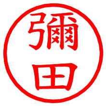 [朱肉の色]を選び、入力窓に“彌田”と入力して[生成]ボタンを押すと、印影が更新され、リンクから電子印鑑(デジタル印影)がダウンロードできます。 電子印鑑「彌田」の作り方文字表示が変なときや、文字バランスが悪いときは[字形切替]のチェックボックスでON/OFFを切り替え[生成]しなおしてください。 生成される画像は通常の印影「彌田.png」と、にじみを表現した少し太めの印影「彌田B.png」の背面透過PNG形式2種と、鮮明なPDF形式の印影「彌田.pdf」の計3種類です。 朱肉の微妙な色の違いを7色で表現しました。デフォルト(左端)は、JISが定めた朱肉の色のマンセル値(7.5R 5/14)をRGB値(217,66,54)に変換したものになっています。 「電子透かし」にチェックを入れて[生成]ボタンを押すと、タイムスタンプを電子透かしとして埋め込んだセキュアな電子印鑑が作れます。詳細は別ページの「タイムスタンプと電子透かし」でご覧ください。 彌田さんの日付印が作れます。「日付スタンプメーカー」は、社内向けの書類に利用されることの多い日付印(データ印)が無料で作れるWebアプリケーションです。中段に日付が入り、上段と下段は、ともに8文字まで文字が入ります。 ![]() 古代文字で落款印が作れます。「落款スタンプメーカー」で作品を引き立たせる落款印が作れます。
