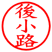 [朱肉の色]を選び、入力窓に“後小路”と入力して[生成]ボタンを押すと、印影が更新され、リンクから電子印鑑(デジタル印影)がダウンロードできます。 電子印鑑「後小路」の作り方文字表示が変なときや、文字バランスが悪いときは[字形切替]のチェックボックスでON/OFFを切り替え[生成]しなおしてください。 生成される画像は通常の印影「後小路.png」と、にじみを表現した少し太めの印影「後小路B.png」の背面透過PNG形式2種と、鮮明なPDF形式の印影「後小路.pdf」の計3種類です。 朱肉の微妙な色の違いを7色で表現しました。デフォルト(左端)は、JISが定めた朱肉の色のマンセル値(7.5R 5/14)をRGB値(217,66,54)に変換したものになっています。 「電子透かし」にチェックを入れて[生成]ボタンを押すと、タイムスタンプを透かしとして埋め込んだセキュアな電子印鑑が作れます。詳細は別ページの「電子透かしとタイムスタンプ」でご覧ください。  後小路さんの日付印が作れます。「日付スタンプメーカー」は、社内向けの書類に利用されることの多い日付印(データ印)が無料で作れるWebアプリケーションです。 中段に日付が入り、上段と下段は、ともに8文字まで文字が入ります。   古代文字で落款印が作れます。「落款スタンプメーカー」で作品を引き立たせる落款印が作れます。  なりきり書道 「落款スタンプメーカー」で作成した落款印の全体的な配置バランスの確認にご利用いただけます。デザインのワンポイントやラインスタンプ等にもお使いください。  遊び心ある後小路さんの角印はいかが? 絵文字が使えてLINEスタンプや年賀状にも使える消しゴムはんこ風の電子印鑑が作れます。  画像スタンプメーカーは、猫派の方はもちろん。犬派の方にもおすすめしたいペットなどのお気に入りの画像とかわいいタッチの文字が入るほっこりしたスタンプです。 マイスタンプメーカーとは法的な電子印鑑にはあたりませんので三文判的な位置付けでご利用ください。 | ||
