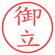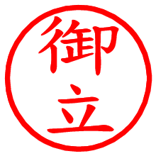 [朱肉の色]を選び、入力窓に“御立”と入力して[生成]ボタンを押すと、印影が更新され、リンクから電子印鑑(デジタル印影)がダウンロードできます。 電子印鑑「御立」の作り方文字表示が変なときや、文字バランスが悪いときは[字形切替]のチェックボックスでON/OFFを切り替え[生成]しなおしてください。 生成される画像は通常の印影「御立.png」と、にじみを表現した少し太めの印影「御立B.png」の背面透過PNG形式2種と、鮮明なPDF形式の印影「御立.pdf」の計3種類です。 朱肉の微妙な色の違いを7色で表現しました。デフォルト(左端)は、JISが定めた朱肉の色のマンセル値(7.5R 5/14)をRGB値(217,66,54)に変換したものになっています。 「電子透かし」にチェックを入れて[生成]ボタンを押すと、タイムスタンプを電子透かしとして埋め込んだセキュアな電子印鑑が作れます。詳細は別ページの「タイムスタンプと電子透かし」でご覧ください。 御立さんの日付印が作れます。「日付スタンプメーカー」は、社内向けの書類に利用されることの多い日付印(データ印)が無料で作れるWebアプリケーションです。中段に日付が入り、上段と下段は、ともに8文字まで文字が入ります。 ![]() 古代文字で落款印が作れます。「落款スタンプメーカー」で作品を引き立たせる落款印が作れます。