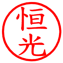 [朱肉の色]を選び、入力窓に“恒光”と入力して[生成]ボタンを押すと、印影が更新され、リンクから電子印鑑(デジタル印影)がダウンロードできます。 電子印鑑「恒光」の作り方文字表示が変なときや、文字バランスが悪いときは[字形切替]のチェックボックスでON/OFFを切り替え[生成]しなおしてください。 生成される画像は通常の印影「恒光.png」と、にじみを表現した少し太めの印影「恒光B.png」の背面透過PNG形式2種と、鮮明なPDF形式の印影「恒光.pdf」の計3種類です。 朱肉の微妙な色の違いを7色で表現しました。デフォルト(左端)は、JISが定めた朱肉の色のマンセル値(7.5R 5/14)をRGB値(217,66,54)に変換したものになっています。 「電子透かし」にチェックを入れて[生成]ボタンを押すと、タイムスタンプを透かしとして埋め込んだセキュアな電子印鑑が作れます。詳細は別ページの「電子透かしとタイムスタンプ」でご覧ください。  恒光さんの日付印が作れます。「日付スタンプメーカー」は、社内向けの書類に利用されることの多い日付印(データ印)が無料で作れるWebアプリケーションです。 中段に日付が入り、上段と下段は、ともに8文字まで文字が入ります。   古代文字で落款印が作れます。「落款スタンプメーカー」で作品を引き立たせる落款印が作れます。  なりきり書道 「落款スタンプメーカー」で作成した落款印の全体的な配置バランスの確認にご利用いただけます。デザインのワンポイントやラインスタンプ等にもお使いください。  遊び心ある恒光さんの角印はいかが? 絵文字が使えてLINEスタンプや年賀状にも使える消しゴムはんこ風の電子印鑑が作れます。  画像スタンプメーカーは、猫派の方はもちろん。犬派の方にもおすすめしたいペットなどのお気に入りの画像とかわいいタッチの文字が入るほっこりしたスタンプです。 マイスタンプメーカーとは法的な電子印鑑にはあたりませんので三文判的な位置付けでご利用ください。 | ||