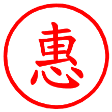 [朱肉の色]を選び、入力窓に“惠”と入力して[生成]ボタンを押すと、印影が更新され、リンクから電子印鑑(デジタル印影)がダウンロードできます。 電子印鑑「惠」の作り方文字表示が変なときや、文字バランスが悪いときは[字形切替]のチェックボックスでON/OFFを切り替え[生成]しなおしてください。 生成される画像は通常の印影「惠.png」と、にじみを表現した少し太めの印影「惠B.png」の背面透過PNG形式2種と、鮮明なPDF形式の印影「惠.pdf」の計3種類です。 朱肉の微妙な色の違いを7色で表現しました。デフォルト(左端)は、JISが定めた朱肉の色のマンセル値(7.5R 5/14)をRGB値(217,66,54)に変換したものになっています。 「電子透かし」にチェックを入れて[生成]ボタンを押すと、タイムスタンプを電子透かしとして埋め込んだセキュアな電子印鑑が作れます。詳細は別ページの「タイムスタンプと電子透かし」でご覧ください。 惠さんの日付印が作れます。「日付スタンプメーカー」は、社内向けの書類に利用されることの多い日付印(データ印)が無料で作れるWebアプリケーションです。中段に日付が入り、上段と下段は、ともに8文字まで文字が入ります。 ![]() 古代文字で落款印が作れます。「落款スタンプメーカー」で作品を引き立たせる落款印が作れます。