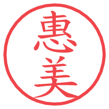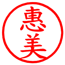 [朱肉の色]を選び、入力窓に“惠美”と入力して[生成]ボタンを押すと、印影が更新され、リンクから電子印鑑(デジタル印影)がダウンロードできます。 電子印鑑「惠美」の作り方文字表示が変なときや、文字バランスが悪いときは[字形切替]のチェックボックスでON/OFFを切り替え[生成]しなおしてください。 生成される画像は通常の印影「惠美.png」と、にじみを表現した少し太めの印影「惠美B.png」の背面透過PNG形式2種と、鮮明なPDF形式の印影「惠美.pdf」の計3種類です。 朱肉の微妙な色の違いを7色で表現しました。デフォルト(左端)は、JISが定めた朱肉の色のマンセル値(7.5R 5/14)をRGB値(217,66,54)に変換したものになっています。 「電子透かし」にチェックを入れて[生成]ボタンを押すと、タイムスタンプを電子透かしとして埋め込んだセキュアな電子印鑑が作れます。詳細は別ページの「タイムスタンプと電子透かし」でご覧ください。 惠美さんの日付印が作れます。「日付スタンプメーカー」は、社内向けの書類に利用されることの多い日付印(データ印)が無料で作れるWebアプリケーションです。中段に日付が入り、上段と下段は、ともに8文字まで文字が入ります。 ![]() 古代文字で落款印が作れます。「落款スタンプメーカー」で作品を引き立たせる落款印が作れます。