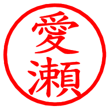 [朱肉の色]を選び、入力窓に“愛瀬”と入力して[生成]ボタンを押すと、印影が更新され、リンクから電子印鑑(デジタル印影)がダウンロードできます。 電子印鑑「愛瀬」の作り方文字表示が変なときや、文字バランスが悪いときは[字形切替]のチェックボックスでON/OFFを切り替え[生成]しなおしてください。 生成される画像は通常の印影「愛瀬.png」と、にじみを表現した少し太めの印影「愛瀬B.png」の背面透過PNG形式2種と、鮮明なPDF形式の印影「愛瀬.pdf」の計3種類です。 朱肉の微妙な色の違いを7色で表現しました。デフォルト(左端)は、JISが定めた朱肉の色のマンセル値(7.5R 5/14)をRGB値(217,66,54)に変換したものになっています。 「電子透かし」にチェックを入れて[生成]ボタンを押すと、タイムスタンプを電子透かしとして埋め込んだセキュアな電子印鑑が作れます。詳細は別ページの「タイムスタンプと電子透かし」でご覧ください。 愛瀬さんの日付印が作れます。「日付スタンプメーカー」は、社内向けの書類に利用されることの多い日付印(データ印)が無料で作れるWebアプリケーションです。中段に日付が入り、上段と下段は、ともに8文字まで文字が入ります。 ![]() 古代文字で落款印が作れます。「落款スタンプメーカー」で作品を引き立たせる落款印が作れます。