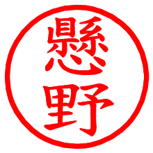 [朱肉の色]を選び、入力窓に“懸野”と入力して[生成]ボタンを押すと、印影が更新され、リンクから電子印鑑(デジタル印影)がダウンロードできます。 電子印鑑「懸野」の作り方文字表示が変なときや、文字バランスが悪いときは[字形切替]のチェックボックスでON/OFFを切り替え[生成]しなおしてください。 生成される画像は通常の印影「懸野.png」と、にじみを表現した少し太めの印影「懸野B.png」の背面透過PNG形式2種と、鮮明なPDF形式の印影「懸野.pdf」の計3種類です。 朱肉の微妙な色の違いを7色で表現しました。デフォルト(左端)は、JISが定めた朱肉の色のマンセル値(7.5R 5/14)をRGB値(217,66,54)に変換したものになっています。 「電子透かし」にチェックを入れて[生成]ボタンを押すと、タイムスタンプを電子透かしとして埋め込んだセキュアな電子印鑑が作れます。詳細は別ページの「タイムスタンプと電子透かし」でご覧ください。 懸野さんの日付印が作れます。「日付スタンプメーカー」は、社内向けの書類に利用されることの多い日付印(データ印)が無料で作れるWebアプリケーションです。中段に日付が入り、上段と下段は、ともに8文字まで文字が入ります。 ![]() 古代文字で落款印が作れます。「落款スタンプメーカー」で作品を引き立たせる落款印が作れます。