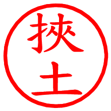 [朱肉の色]を選び、入力窓に“挾土”と入力して[生成]ボタンを押すと、印影が更新され、リンクから電子印鑑(デジタル印影)がダウンロードできます。 電子印鑑「挾土」の作り方文字表示が変なときや、文字バランスが悪いときは[字形切替]のチェックボックスでON/OFFを切り替え[生成]しなおしてください。 生成される画像は通常の印影「挾土.png」と、にじみを表現した少し太めの印影「挾土B.png」の背面透過PNG形式2種と、鮮明なPDF形式の印影「挾土.pdf」の計3種類です。 朱肉の微妙な色の違いを7色で表現しました。デフォルト(左端)は、JISが定めた朱肉の色のマンセル値(7.5R 5/14)をRGB値(217,66,54)に変換したものになっています。 「電子透かし」にチェックを入れて[生成]ボタンを押すと、タイムスタンプを電子透かしとして埋め込んだセキュアな電子印鑑が作れます。詳細は別ページの「タイムスタンプと電子透かし」でご覧ください。 挾土さんの日付印が作れます。「日付スタンプメーカー」は、社内向けの書類に利用されることの多い日付印(データ印)が無料で作れるWebアプリケーションです。中段に日付が入り、上段と下段は、ともに8文字まで文字が入ります。 ![]() 古代文字で落款印が作れます。「落款スタンプメーカー」で作品を引き立たせる落款印が作れます。
