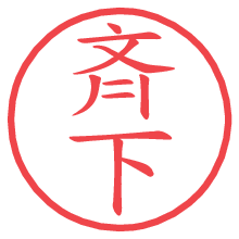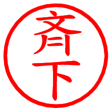 [朱肉の色]を選び、入力窓に“斉下”と入力して[生成]ボタンを押すと、印影が更新され、リンクから電子印鑑(デジタル印影)がダウンロードできます。 電子印鑑「斉下」の作り方文字表示が変なときや、文字バランスが悪いときは[字形切替]のチェックボックスでON/OFFを切り替え[生成]しなおしてください。 生成される画像は通常の印影「斉下.png」と、にじみを表現した少し太めの印影「斉下B.png」の背面透過PNG形式2種と、鮮明なPDF形式の印影「斉下.pdf」の計3種類です。 朱肉の微妙な色の違いを7色で表現しました。デフォルト(左端)は、JISが定めた朱肉の色のマンセル値(7.5R 5/14)をRGB値(217,66,54)に変換したものになっています。 「電子透かし」にチェックを入れて[生成]ボタンを押すと、タイムスタンプを電子透かしとして埋め込んだセキュアな電子印鑑が作れます。詳細は別ページの「タイムスタンプと電子透かし」でご覧ください。 斉下さんの日付印が作れます。「日付スタンプメーカー」は、社内向けの書類に利用されることの多い日付印(データ印)が無料で作れるWebアプリケーションです。中段に日付が入り、上段と下段は、ともに8文字まで文字が入ります。 ![]() 古代文字で落款印が作れます。「落款スタンプメーカー」で作品を引き立たせる落款印が作れます。