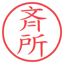 [朱肉の色]を選び、入力窓に“斉所”と入力して[生成]ボタンを押すと、印影が更新され、リンクから電子印鑑(デジタル印影)がダウンロードできます。 電子印鑑「斉所」の作り方文字表示が変なときや、文字バランスが悪いときは[字形切替]のチェックボックスでON/OFFを切り替え[生成]しなおしてください。 生成される画像は通常の印影「斉所.png」と、にじみを表現した少し太めの印影「斉所B.png」の背面透過PNG形式2種と、鮮明なPDF形式の印影「斉所.pdf」の計3種類です。 朱肉の微妙な色の違いを7色で表現しました。デフォルト(左端)は、JISが定めた朱肉の色のマンセル値(7.5R 5/14)をRGB値(217,66,54)に変換したものになっています。 「電子透かし」にチェックを入れて[生成]ボタンを押すと、タイムスタンプを電子透かしとして埋め込んだセキュアな電子印鑑が作れます。詳細は別ページの「タイムスタンプと電子透かし」でご覧ください。 斉所さんの日付印が作れます。「日付スタンプメーカー」は、社内向けの書類に利用されることの多い日付印(データ印)が無料で作れるWebアプリケーションです。中段に日付が入り、上段と下段は、ともに8文字まで文字が入ります。 ![]() 古代文字で落款印が作れます。「落款スタンプメーカー」で作品を引き立たせる落款印が作れます。