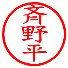 [朱肉の色]を選び、入力窓に“斉野平”と入力して[生成]ボタンを押すと、印影が更新され、リンクから電子印鑑(デジタル印影)がダウンロードできます。 電子印鑑「斉野平」の作り方文字表示が変なときや、文字バランスが悪いときは[字形切替]のチェックボックスでON/OFFを切り替え[生成]しなおしてください。 生成される画像は通常の印影「斉野平.png」と、にじみを表現した少し太めの印影「斉野平B.png」の背面透過PNG形式2種と、鮮明なPDF形式の印影「斉野平.pdf」の計3種類です。 朱肉の微妙な色の違いを7色で表現しました。デフォルト(左端)は、JISが定めた朱肉の色のマンセル値(7.5R 5/14)をRGB値(217,66,54)に変換したものになっています。 「電子透かし」にチェックを入れて[生成]ボタンを押すと、タイムスタンプを電子透かしとして埋め込んだセキュアな電子印鑑が作れます。詳細は別ページの「タイムスタンプと電子透かし」でご覧ください。 斉野平さんの日付印が作れます。「日付スタンプメーカー」は、社内向けの書類に利用されることの多い日付印(データ印)が無料で作れるWebアプリケーションです。中段に日付が入り、上段と下段は、ともに8文字まで文字が入ります。 ![]() 古代文字で落款印が作れます。「落款スタンプメーカー」で作品を引き立たせる落款印が作れます。