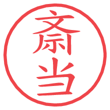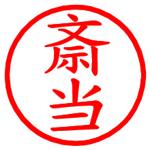 [朱肉の色]を選び、入力窓に“斎当”と入力して[生成]ボタンを押すと、印影が更新され、リンクから電子印鑑(デジタル印影)がダウンロードできます。 電子印鑑「斎当」の作り方文字表示が変なときや、文字バランスが悪いときは[字形切替]のチェックボックスでON/OFFを切り替え[生成]しなおしてください。 生成される画像は通常の印影「斎当.png」と、にじみを表現した少し太めの印影「斎当B.png」の背面透過PNG形式2種と、鮮明なPDF形式の印影「斎当.pdf」の計3種類です。 朱肉の微妙な色の違いを7色で表現しました。デフォルト(左端)は、JISが定めた朱肉の色のマンセル値(7.5R 5/14)をRGB値(217,66,54)に変換したものになっています。 「電子透かし」にチェックを入れて[生成]ボタンを押すと、タイムスタンプを電子透かしとして埋め込んだセキュアな電子印鑑が作れます。詳細は別ページの「タイムスタンプと電子透かし」でご覧ください。 斎当さんの日付印が作れます。「日付スタンプメーカー」は、社内向けの書類に利用されることの多い日付印(データ印)が無料で作れるWebアプリケーションです。中段に日付が入り、上段と下段は、ともに8文字まで文字が入ります。 ![]() 古代文字で落款印が作れます。「落款スタンプメーカー」で作品を引き立たせる落款印が作れます。