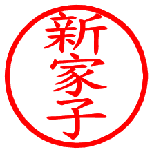 [朱肉の色]を選び、入力窓に“新家子”と入力して[生成]ボタンを押すと、印影が更新され、リンクから電子印鑑(デジタル印影)がダウンロードできます。 電子印鑑「新家子」の作り方文字表示が変なときや、文字バランスが悪いときは[字形切替]のチェックボックスでON/OFFを切り替え[生成]しなおしてください。 生成される画像は通常の印影「新家子.png」と、にじみを表現した少し太めの印影「新家子B.png」の背面透過PNG形式2種と、鮮明なPDF形式の印影「新家子.pdf」の計3種類です。 朱肉の微妙な色の違いを7色で表現しました。デフォルト(左端)は、JISが定めた朱肉の色のマンセル値(7.5R 5/14)をRGB値(217,66,54)に変換したものになっています。 「電子透かし」にチェックを入れて[生成]ボタンを押すと、タイムスタンプを電子透かしとして埋め込んだセキュアな電子印鑑が作れます。詳細は別ページの「タイムスタンプと電子透かし」でご覧ください。 新家子さんの日付印が作れます。「日付スタンプメーカー」は、社内向けの書類に利用されることの多い日付印(データ印)が無料で作れるWebアプリケーションです。中段に日付が入り、上段と下段は、ともに8文字まで文字が入ります。 ![]() 古代文字で落款印が作れます。「落款スタンプメーカー」で作品を引き立たせる落款印が作れます。