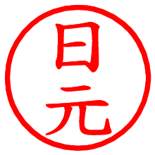 [朱肉の色]を選び、入力窓に“日元”と入力して[生成]ボタンを押すと、印影が更新され、リンクから電子印鑑(デジタル印影)がダウンロードできます。 電子印鑑「日元」の作り方文字表示が変なときや、文字バランスが悪いときは[字形切替]のチェックボックスでON/OFFを切り替え[生成]しなおしてください。 生成される画像は通常の印影「日元.png」と、にじみを表現した少し太めの印影「日元B.png」の背面透過PNG形式2種と、鮮明なPDF形式の印影「日元.pdf」の計3種類です。 朱肉の微妙な色の違いを7色で表現しました。デフォルト(左端)は、JISが定めた朱肉の色のマンセル値(7.5R 5/14)をRGB値(217,66,54)に変換したものになっています。 「電子透かし」にチェックを入れて[生成]ボタンを押すと、タイムスタンプを電子透かしとして埋め込んだセキュアな電子印鑑が作れます。詳細は別ページの「タイムスタンプと電子透かし」でご覧ください。 日元さんの日付印が作れます。「日付スタンプメーカー」は、社内向けの書類に利用されることの多い日付印(データ印)が無料で作れるWebアプリケーションです。中段に日付が入り、上段と下段は、ともに8文字まで文字が入ります。 ![]() 古代文字で落款印が作れます。「落款スタンプメーカー」で作品を引き立たせる落款印が作れます。