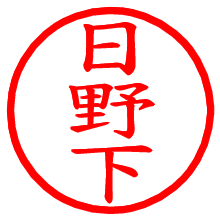 [朱肉の色]を選び、入力窓に“日野下”と入力して[生成]ボタンを押すと、印影が更新され、リンクから電子印鑑(デジタル印影)がダウンロードできます。 電子印鑑「日野下」の作り方文字表示が変なときや、文字バランスが悪いときは[字形切替]のチェックボックスでON/OFFを切り替え[生成]しなおしてください。 生成される画像は通常の印影「日野下.png」と、にじみを表現した少し太めの印影「日野下B.png」の背面透過PNG形式2種と、鮮明なPDF形式の印影「日野下.pdf」の計3種類です。 朱肉の微妙な色の違いを7色で表現しました。デフォルト(左端)は、JISが定めた朱肉の色のマンセル値(7.5R 5/14)をRGB値(217,66,54)に変換したものになっています。 「電子透かし」にチェックを入れて[生成]ボタンを押すと、タイムスタンプを電子透かしとして埋め込んだセキュアな電子印鑑が作れます。詳細は別ページの「タイムスタンプと電子透かし」でご覧ください。 日野下さんの日付印が作れます。「日付スタンプメーカー」は、社内向けの書類に利用されることの多い日付印(データ印)が無料で作れるWebアプリケーションです。中段に日付が入り、上段と下段は、ともに8文字まで文字が入ります。 ![]() 古代文字で落款印が作れます。「落款スタンプメーカー」で作品を引き立たせる落款印が作れます。