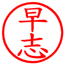 [朱肉の色]を選び、入力窓に“早志”と入力して[生成]ボタンを押すと、印影が更新され、リンクから電子印鑑(デジタル印影)がダウンロードできます。 電子印鑑「早志」の作り方文字表示が変なときや、文字バランスが悪いときは[字形切替]のチェックボックスでON/OFFを切り替え[生成]しなおしてください。 生成される画像は通常の印影「早志.png」と、にじみを表現した少し太めの印影「早志B.png」の背面透過PNG形式2種と、鮮明なPDF形式の印影「早志.pdf」の計3種類です。 朱肉の微妙な色の違いを7色で表現しました。デフォルト(左端)は、JISが定めた朱肉の色のマンセル値(7.5R 5/14)をRGB値(217,66,54)に変換したものになっています。 「電子透かし」にチェックを入れて[生成]ボタンを押すと、タイムスタンプを透かしとして埋め込んだセキュアな電子印鑑が作れます。詳細は別ページの「電子透かしとタイムスタンプ」でご覧ください。 早志さんの日付印が作れます。「日付スタンプメーカー」は、社内向けの書類に利用されることの多い日付印(データ印)が無料で作れるWebアプリケーションです。中段に日付が入り、上段と下段は、ともに8文字まで文字が入ります。 ![]() 古代文字で落款印が作れます。「落款スタンプメーカー」で作品を引き立たせる落款印が作れます。