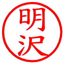 [朱肉の色]を選び、入力窓に“明沢”と入力して[生成]ボタンを押すと、印影が更新され、リンクから電子印鑑(デジタル印影)がダウンロードできます。 電子印鑑「明沢」の作り方文字表示が変なときや、文字バランスが悪いときは[字形切替]のチェックボックスでON/OFFを切り替え[生成]しなおしてください。 生成される画像は通常の印影「明沢.png」と、にじみを表現した少し太めの印影「明沢B.png」の背面透過PNG形式2種と、鮮明なPDF形式の印影「明沢.pdf」の計3種類です。 朱肉の微妙な色の違いを7色で表現しました。デフォルト(左端)は、JISが定めた朱肉の色のマンセル値(7.5R 5/14)をRGB値(217,66,54)に変換したものになっています。 「電子透かし」にチェックを入れて[生成]ボタンを押すと、タイムスタンプを電子透かしとして埋め込んだセキュアな電子印鑑が作れます。詳細は別ページの「タイムスタンプと電子透かし」でご覧ください。 明沢さんの日付印が作れます。「日付スタンプメーカー」は、社内向けの書類に利用されることの多い日付印(データ印)が無料で作れるWebアプリケーションです。中段に日付が入り、上段と下段は、ともに8文字まで文字が入ります。 ![]() 古代文字で落款印が作れます。「落款スタンプメーカー」で作品を引き立たせる落款印が作れます。
