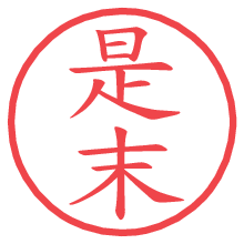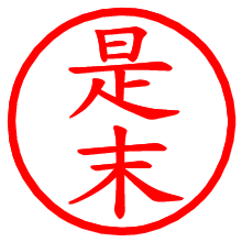 [朱肉の色]を選び、入力窓に“是末”と入力して[生成]ボタンを押すと、印影が更新され、リンクから電子印鑑(デジタル印影)がダウンロードできます。 電子印鑑「是末」の作り方文字表示が変なときや、文字バランスが悪いときは[字形切替]のチェックボックスでON/OFFを切り替え[生成]しなおしてください。 生成される画像は通常の印影「是末.png」と、にじみを表現した少し太めの印影「是末B.png」の背面透過PNG形式2種と、鮮明なPDF形式の印影「是末.pdf」の計3種類です。 朱肉の微妙な色の違いを7色で表現しました。デフォルト(左端)は、JISが定めた朱肉の色のマンセル値(7.5R 5/14)をRGB値(217,66,54)に変換したものになっています。 「電子透かし」にチェックを入れて[生成]ボタンを押すと、タイムスタンプを電子透かしとして埋め込んだセキュアな電子印鑑が作れます。詳細は別ページの「タイムスタンプと電子透かし」でご覧ください。 是末さんの日付印が作れます。「日付スタンプメーカー」は、社内向けの書類に利用されることの多い日付印(データ印)が無料で作れるWebアプリケーションです。中段に日付が入り、上段と下段は、ともに8文字まで文字が入ります。 ![]() 古代文字で落款印が作れます。「落款スタンプメーカー」で作品を引き立たせる落款印が作れます。