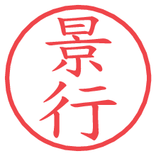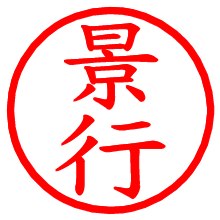 [朱肉の色]を選び、入力窓に“景行”と入力して[生成]ボタンを押すと、印影が更新され、リンクから電子印鑑(デジタル印影)がダウンロードできます。 電子印鑑「景行」の作り方文字表示が変なときや、文字バランスが悪いときは[字形切替]のチェックボックスでON/OFFを切り替え[生成]しなおしてください。 生成される画像は通常の印影「景行.png」と、にじみを表現した少し太めの印影「景行B.png」の背面透過PNG形式2種と、鮮明なPDF形式の印影「景行.pdf」の計3種類です。 朱肉の微妙な色の違いを7色で表現しました。デフォルト(左端)は、JISが定めた朱肉の色のマンセル値(7.5R 5/14)をRGB値(217,66,54)に変換したものになっています。 「電子透かし」にチェックを入れて[生成]ボタンを押すと、タイムスタンプを電子透かしとして埋め込んだセキュアな電子印鑑が作れます。詳細は別ページの「タイムスタンプと電子透かし」でご覧ください。 景行さんの日付印が作れます。「日付スタンプメーカー」は、社内向けの書類に利用されることの多い日付印(データ印)が無料で作れるWebアプリケーションです。中段に日付が入り、上段と下段は、ともに8文字まで文字が入ります。 ![]() 古代文字で落款印が作れます。「落款スタンプメーカー」で作品を引き立たせる落款印が作れます。