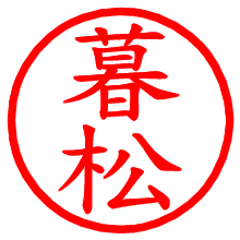 [朱肉の色]を選び、入力窓に“暮松”と入力して[生成]ボタンを押すと、印影が更新され、リンクから電子印鑑(デジタル印影)がダウンロードできます。 電子印鑑「暮松」の作り方文字表示が変なときや、文字バランスが悪いときは[字形切替]のチェックボックスでON/OFFを切り替え[生成]しなおしてください。 生成される画像は通常の印影「暮松.png」と、にじみを表現した少し太めの印影「暮松B.png」の背面透過PNG形式2種と、鮮明なPDF形式の印影「暮松.pdf」の計3種類です。 朱肉の微妙な色の違いを7色で表現しました。デフォルト(左端)は、JISが定めた朱肉の色のマンセル値(7.5R 5/14)をRGB値(217,66,54)に変換したものになっています。 「電子透かし」にチェックを入れて[生成]ボタンを押すと、タイムスタンプを電子透かしとして埋め込んだセキュアな電子印鑑が作れます。詳細は別ページの「タイムスタンプと電子透かし」でご覧ください。 暮松さんの日付印が作れます。「日付スタンプメーカー」は、社内向けの書類に利用されることの多い日付印(データ印)が無料で作れるWebアプリケーションです。中段に日付が入り、上段と下段は、ともに8文字まで文字が入ります。 ![]() 古代文字で落款印が作れます。「落款スタンプメーカー」で作品を引き立たせる落款印が作れます。