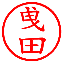 [朱肉の色]を選び、入力窓に“曵田”と入力して[生成]ボタンを押すと、印影が更新され、リンクから電子印鑑(デジタル印影)がダウンロードできます。 電子印鑑「曵田」の作り方文字表示が変なときや、文字バランスが悪いときは[字形切替]のチェックボックスでON/OFFを切り替え[生成]しなおしてください。 生成される画像は通常の印影「曵田.png」と、にじみを表現した少し太めの印影「曵田B.png」の背面透過PNG形式2種と、鮮明なPDF形式の印影「曵田.pdf」の計3種類です。 朱肉の微妙な色の違いを7色で表現しました。デフォルト(左端)は、JISが定めた朱肉の色のマンセル値(7.5R 5/14)をRGB値(217,66,54)に変換したものになっています。 「電子透かし」にチェックを入れて[生成]ボタンを押すと、タイムスタンプを電子透かしとして埋め込んだセキュアな電子印鑑が作れます。詳細は別ページの「タイムスタンプと電子透かし」でご覧ください。 曵田さんの日付印が作れます。「日付スタンプメーカー」は、社内向けの書類に利用されることの多い日付印(データ印)が無料で作れるWebアプリケーションです。中段に日付が入り、上段と下段は、ともに8文字まで文字が入ります。 ![]() 古代文字で落款印が作れます。「落款スタンプメーカー」で作品を引き立たせる落款印が作れます。