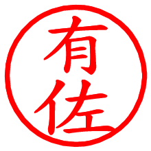 [朱肉の色]を選び、入力窓に“有佐”と入力して[生成]ボタンを押すと、印影が更新され、リンクから電子印鑑(デジタル印影)がダウンロードできます。 電子印鑑「有佐」の作り方文字表示が変なときや、文字バランスが悪いときは[字形切替]のチェックボックスでON/OFFを切り替え[生成]しなおしてください。 生成される画像は通常の印影「有佐.png」と、にじみを表現した少し太めの印影「有佐B.png」の背面透過PNG形式2種と、鮮明なPDF形式の印影「有佐.pdf」の計3種類です。 朱肉の微妙な色の違いを7色で表現しました。デフォルト(左端)は、JISが定めた朱肉の色のマンセル値(7.5R 5/14)をRGB値(217,66,54)に変換したものになっています。 「電子透かし」にチェックを入れて[生成]ボタンを押すと、タイムスタンプを電子透かしとして埋め込んだセキュアな電子印鑑が作れます。詳細は別ページの「タイムスタンプと電子透かし」でご覧ください。 有佐さんの日付印が作れます。「日付スタンプメーカー」は、社内向けの書類に利用されることの多い日付印(データ印)が無料で作れるWebアプリケーションです。中段に日付が入り、上段と下段は、ともに8文字まで文字が入ります。 ![]() 古代文字で落款印が作れます。「落款スタンプメーカー」で作品を引き立たせる落款印が作れます。