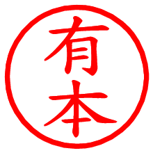 [朱肉の色]を選び、入力窓に“有本”と入力して[生成]ボタンを押すと、印影が更新され、リンクから電子印鑑(デジタル印影)がダウンロードできます。 電子印鑑「有本」の作り方文字表示が変なときや、文字バランスが悪いときは[字形切替]のチェックボックスでON/OFFを切り替え[生成]しなおしてください。 生成される画像は通常の印影「有本.png」と、にじみを表現した少し太めの印影「有本B.png」の背面透過PNG形式2種と、鮮明なPDF形式の印影「有本.pdf」の計3種類です。 朱肉の微妙な色の違いを7色で表現しました。デフォルト(左端)は、JISが定めた朱肉の色のマンセル値(7.5R 5/14)をRGB値(217,66,54)に変換したものになっています。 「電子透かし」にチェックを入れて[生成]ボタンを押すと、タイムスタンプを透かしとして埋め込んだセキュアな電子印鑑が作れます。詳細は別ページの「電子透かしとタイムスタンプ」でご覧ください。 有本さんの日付印が作れます。「日付スタンプメーカー」は、社内向けの書類に利用されることの多い日付印(データ印)が無料で作れるWebアプリケーションです。中段に日付が入り、上段と下段は、ともに8文字まで文字が入ります。 ![]() 古代文字で落款印が作れます。「落款スタンプメーカー」で作品を引き立たせる落款印が作れます。
