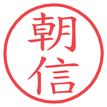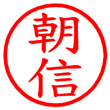 [朱肉の色]を選び、入力窓に“朝信”と入力して[生成]ボタンを押すと、印影が更新され、リンクから電子印鑑(デジタル印影)がダウンロードできます。 電子印鑑「朝信」の作り方文字表示が変なときや、文字バランスが悪いときは[字形切替]のチェックボックスでON/OFFを切り替え[生成]しなおしてください。 生成される画像は通常の印影「朝信.png」と、にじみを表現した少し太めの印影「朝信B.png」の背面透過PNG形式2種と、鮮明なPDF形式の印影「朝信.pdf」の計3種類です。 朱肉の微妙な色の違いを7色で表現しました。デフォルト(左端)は、JISが定めた朱肉の色のマンセル値(7.5R 5/14)をRGB値(217,66,54)に変換したものになっています。 「電子透かし」にチェックを入れて[生成]ボタンを押すと、タイムスタンプを電子透かしとして埋め込んだセキュアな電子印鑑が作れます。詳細は別ページの「タイムスタンプと電子透かし」でご覧ください。 朝信さんの日付印が作れます。「日付スタンプメーカー」は、社内向けの書類に利用されることの多い日付印(データ印)が無料で作れるWebアプリケーションです。中段に日付が入り、上段と下段は、ともに8文字まで文字が入ります。 ![]() 古代文字で落款印が作れます。「落款スタンプメーカー」で作品を引き立たせる落款印が作れます。