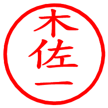 [朱肉の色]を選び、入力窓に“木佐一”と入力して[生成]ボタンを押すと、印影が更新され、リンクから電子印鑑(デジタル印影)がダウンロードできます。 電子印鑑「木佐一」の作り方文字表示が変なときや、文字バランスが悪いときは[字形切替]のチェックボックスでON/OFFを切り替え[生成]しなおしてください。 生成される画像は通常の印影「木佐一.png」と、にじみを表現した少し太めの印影「木佐一B.png」の背面透過PNG形式2種と、鮮明なPDF形式の印影「木佐一.pdf」の計3種類です。 朱肉の微妙な色の違いを7色で表現しました。デフォルト(左端)は、JISが定めた朱肉の色のマンセル値(7.5R 5/14)をRGB値(217,66,54)に変換したものになっています。 「電子透かし」にチェックを入れて[生成]ボタンを押すと、タイムスタンプを透かしとして埋め込んだセキュアな電子印鑑が作れます。詳細は別ページの「電子透かしとタイムスタンプ」でご覧ください。  木佐一さんの日付印が作れます。「日付スタンプメーカー」は、社内向けの書類に利用されることの多い日付印(データ印)が無料で作れるWebアプリケーションです。 中段に日付が入り、上段と下段は、ともに8文字まで文字が入ります。   古代文字で落款印が作れます。「落款スタンプメーカー」で作品を引き立たせる落款印が作れます。  なりきり書道 「落款スタンプメーカー」で作成した落款印の全体的な配置バランスの確認にご利用いただけます。デザインのワンポイントやラインスタンプ等にもお使いください。  遊び心ある木佐一さんの角印はいかが? 絵文字が使えてLINEスタンプや年賀状にも使える消しゴムはんこ風の電子印鑑が作れます。  画像スタンプメーカーは、猫派の方はもちろん。犬派の方にもおすすめしたいペットなどのお気に入りの画像とかわいいタッチの文字が入るほっこりしたスタンプです。 マイスタンプメーカーとは法的な電子印鑑にはあたりませんので三文判的な位置付けでご利用ください。 | ||