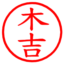 [朱肉の色]を選び、入力窓に“木吉”と入力して[生成]ボタンを押すと、印影が更新され、リンクから電子印鑑(デジタル印影)がダウンロードできます。 電子印鑑「木吉」の作り方文字表示が変なときや、文字バランスが悪いときは[字形切替]のチェックボックスでON/OFFを切り替え[生成]しなおしてください。 生成される画像は通常の印影「木吉.png」と、にじみを表現した少し太めの印影「木吉B.png」の背面透過PNG形式2種と、鮮明なPDF形式の印影「木吉.pdf」の計3種類です。 朱肉の微妙な色の違いを7色で表現しました。デフォルト(左端)は、JISが定めた朱肉の色のマンセル値(7.5R 5/14)をRGB値(217,66,54)に変換したものになっています。 「電子透かし」にチェックを入れて[生成]ボタンを押すと、タイムスタンプを透かしとして埋め込んだセキュアな電子印鑑が作れます。詳細は別ページの「電子透かしとタイムスタンプ」でご覧ください。 木吉さんの日付印が作れます。「日付スタンプメーカー」は、社内向けの書類に利用されることの多い日付印(データ印)が無料で作れるWebアプリケーションです。中段に日付が入り、上段と下段は、ともに8文字まで文字が入ります。 ![]() 古代文字で落款印が作れます。「落款スタンプメーカー」で作品を引き立たせる落款印が作れます。