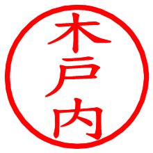 [朱肉の色]を選び、入力窓に“木戸内”と入力して[生成]ボタンを押すと、印影が更新され、リンクから電子印鑑(デジタル印影)がダウンロードできます。 電子印鑑「木戸内」の作り方文字表示が変なときや、文字バランスが悪いときは[字形切替]のチェックボックスでON/OFFを切り替え[生成]しなおしてください。 生成される画像は通常の印影「木戸内.png」と、にじみを表現した少し太めの印影「木戸内B.png」の背面透過PNG形式2種と、鮮明なPDF形式の印影「木戸内.pdf」の計3種類です。 朱肉の微妙な色の違いを7色で表現しました。デフォルト(左端)は、JISが定めた朱肉の色のマンセル値(7.5R 5/14)をRGB値(217,66,54)に変換したものになっています。 「電子透かし」にチェックを入れて[生成]ボタンを押すと、タイムスタンプを電子透かしとして埋め込んだセキュアな電子印鑑が作れます。詳細は別ページの「タイムスタンプと電子透かし」でご覧ください。 木戸内さんの日付印が作れます。「日付スタンプメーカー」は、社内向けの書類に利用されることの多い日付印(データ印)が無料で作れるWebアプリケーションです。中段に日付が入り、上段と下段は、ともに8文字まで文字が入ります。 ![]() 古代文字で落款印が作れます。「落款スタンプメーカー」で作品を引き立たせる落款印が作れます。