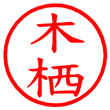 [朱肉の色]を選び、入力窓に“木栖”と入力して[生成]ボタンを押すと、印影が更新され、リンクから電子印鑑(デジタル印影)がダウンロードできます。 電子印鑑「木栖」の作り方文字表示が変なときや、文字バランスが悪いときは[字形切替]のチェックボックスでON/OFFを切り替え[生成]しなおしてください。 生成される画像は通常の印影「木栖.png」と、にじみを表現した少し太めの印影「木栖B.png」の背面透過PNG形式2種と、鮮明なPDF形式の印影「木栖.pdf」の計3種類です。 朱肉の微妙な色の違いを7色で表現しました。デフォルト(左端)は、JISが定めた朱肉の色のマンセル値(7.5R 5/14)をRGB値(217,66,54)に変換したものになっています。 「電子透かし」にチェックを入れて[生成]ボタンを押すと、タイムスタンプを電子透かしとして埋め込んだセキュアな電子印鑑が作れます。詳細は別ページの「タイムスタンプと電子透かし」でご覧ください。 木栖さんの日付印が作れます。「日付スタンプメーカー」は、社内向けの書類に利用されることの多い日付印(データ印)が無料で作れるWebアプリケーションです。中段に日付が入り、上段と下段は、ともに8文字まで文字が入ります。 ![]() 古代文字で落款印が作れます。「落款スタンプメーカー」で作品を引き立たせる落款印が作れます。