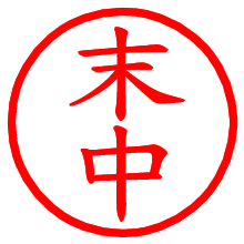 [朱肉の色]を選び、入力窓に“末中”と入力して[生成]ボタンを押すと、印影が更新され、リンクから電子印鑑(デジタル印影)がダウンロードできます。 電子印鑑「末中」の作り方文字表示が変なときや、文字バランスが悪いときは[字形切替]のチェックボックスでON/OFFを切り替え[生成]しなおしてください。 生成される画像は通常の印影「末中.png」と、にじみを表現した少し太めの印影「末中B.png」の背面透過PNG形式2種と、鮮明なPDF形式の印影「末中.pdf」の計3種類です。 朱肉の微妙な色の違いを7色で表現しました。デフォルト(左端)は、JISが定めた朱肉の色のマンセル値(7.5R 5/14)をRGB値(217,66,54)に変換したものになっています。 「電子透かし」にチェックを入れて[生成]ボタンを押すと、タイムスタンプを電子透かしとして埋め込んだセキュアな電子印鑑が作れます。詳細は別ページの「タイムスタンプと電子透かし」でご覧ください。 末中さんの日付印が作れます。「日付スタンプメーカー」は、社内向けの書類に利用されることの多い日付印(データ印)が無料で作れるWebアプリケーションです。中段に日付が入り、上段と下段は、ともに8文字まで文字が入ります。 ![]() 古代文字で落款印が作れます。「落款スタンプメーカー」で作品を引き立たせる落款印が作れます。