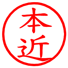 [朱肉の色]を選び、入力窓に“本近”と入力して[生成]ボタンを押すと、印影が更新され、リンクから電子印鑑(デジタル印影)がダウンロードできます。 電子印鑑「本近」の作り方文字表示が変なときや、文字バランスが悪いときは[字形切替]のチェックボックスでON/OFFを切り替え[生成]しなおしてください。 生成される画像は通常の印影「本近.png」と、にじみを表現した少し太めの印影「本近B.png」の背面透過PNG形式2種と、鮮明なPDF形式の印影「本近.pdf」の計3種類です。 朱肉の微妙な色の違いを7色で表現しました。デフォルト(左端)は、JISが定めた朱肉の色のマンセル値(7.5R 5/14)をRGB値(217,66,54)に変換したものになっています。 「電子透かし」にチェックを入れて[生成]ボタンを押すと、タイムスタンプを電子透かしとして埋め込んだセキュアな電子印鑑が作れます。詳細は別ページの「タイムスタンプと電子透かし」でご覧ください。 本近さんの日付印が作れます。「日付スタンプメーカー」は、社内向けの書類に利用されることの多い日付印(データ印)が無料で作れるWebアプリケーションです。中段に日付が入り、上段と下段は、ともに8文字まで文字が入ります。 ![]() 古代文字で落款印が作れます。「落款スタンプメーカー」で作品を引き立たせる落款印が作れます。