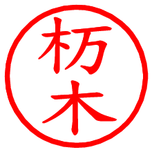 [朱肉の色]を選び、入力窓に“杤木”と入力して[生成]ボタンを押すと、印影が更新され、リンクから電子印鑑(デジタル印影)がダウンロードできます。 電子印鑑「杤木」の作り方文字表示が変なときや、文字バランスが悪いときは[字形切替]のチェックボックスでON/OFFを切り替え[生成]しなおしてください。 生成される画像は通常の印影「杤木.png」と、にじみを表現した少し太めの印影「杤木B.png」の背面透過PNG形式2種と、鮮明なPDF形式の印影「杤木.pdf」の計3種類です。 朱肉の微妙な色の違いを7色で表現しました。デフォルト(左端)は、JISが定めた朱肉の色のマンセル値(7.5R 5/14)をRGB値(217,66,54)に変換したものになっています。 「電子透かし」にチェックを入れて[生成]ボタンを押すと、タイムスタンプを電子透かしとして埋め込んだセキュアな電子印鑑が作れます。詳細は別ページの「タイムスタンプと電子透かし」でご覧ください。 杤木さんの日付印が作れます。「日付スタンプメーカー」は、社内向けの書類に利用されることの多い日付印(データ印)が無料で作れるWebアプリケーションです。中段に日付が入り、上段と下段は、ともに8文字まで文字が入ります。 ![]() 古代文字で落款印が作れます。「落款スタンプメーカー」で作品を引き立たせる落款印が作れます。