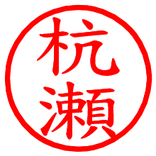 [朱肉の色]を選び、入力窓に“杭瀬”と入力して[生成]ボタンを押すと、印影が更新され、リンクから電子印鑑(デジタル印影)がダウンロードできます。 電子印鑑「杭瀬」の作り方文字表示が変なときや、文字バランスが悪いときは[字形切替]のチェックボックスでON/OFFを切り替え[生成]しなおしてください。 生成される画像は通常の印影「杭瀬.png」と、にじみを表現した少し太めの印影「杭瀬B.png」の背面透過PNG形式2種と、鮮明なPDF形式の印影「杭瀬.pdf」の計3種類です。 朱肉の微妙な色の違いを7色で表現しました。デフォルト(左端)は、JISが定めた朱肉の色のマンセル値(7.5R 5/14)をRGB値(217,66,54)に変換したものになっています。 「電子透かし」にチェックを入れて[生成]ボタンを押すと、タイムスタンプを電子透かしとして埋め込んだセキュアな電子印鑑が作れます。詳細は別ページの「タイムスタンプと電子透かし」でご覧ください。 杭瀬さんの日付印が作れます。「日付スタンプメーカー」は、社内向けの書類に利用されることの多い日付印(データ印)が無料で作れるWebアプリケーションです。中段に日付が入り、上段と下段は、ともに8文字まで文字が入ります。 ![]() 古代文字で落款印が作れます。「落款スタンプメーカー」で作品を引き立たせる落款印が作れます。