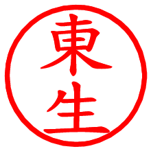 [朱肉の色]を選び、入力窓に“東生”と入力して[生成]ボタンを押すと、印影が更新され、リンクから電子印鑑(デジタル印影)がダウンロードできます。 電子印鑑「東生」の作り方文字表示が変なときや、文字バランスが悪いときは[字形切替]のチェックボックスでON/OFFを切り替え[生成]しなおしてください。 生成される画像は通常の印影「東生.png」と、にじみを表現した少し太めの印影「東生B.png」の背面透過PNG形式2種と、鮮明なPDF形式の印影「東生.pdf」の計3種類です。 朱肉の微妙な色の違いを7色で表現しました。デフォルト(左端)は、JISが定めた朱肉の色のマンセル値(7.5R 5/14)をRGB値(217,66,54)に変換したものになっています。 「電子透かし」にチェックを入れて[生成]ボタンを押すと、タイムスタンプを電子透かしとして埋め込んだセキュアな電子印鑑が作れます。詳細は別ページの「タイムスタンプと電子透かし」でご覧ください。 東生さんの日付印が作れます。「日付スタンプメーカー」は、社内向けの書類に利用されることの多い日付印(データ印)が無料で作れるWebアプリケーションです。中段に日付が入り、上段と下段は、ともに8文字まで文字が入ります。 ![]() 古代文字で落款印が作れます。「落款スタンプメーカー」で作品を引き立たせる落款印が作れます。