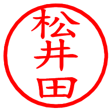 [朱肉の色]を選び、入力窓に“松井田”と入力して[生成]ボタンを押すと、印影が更新され、リンクから電子印鑑(デジタル印影)がダウンロードできます。 電子印鑑「松井田」の作り方文字表示が変なときや、文字バランスが悪いときは[字形切替]のチェックボックスでON/OFFを切り替え[生成]しなおしてください。 生成される画像は通常の印影「松井田.png」と、にじみを表現した少し太めの印影「松井田B.png」の背面透過PNG形式2種と、鮮明なPDF形式の印影「松井田.pdf」の計3種類です。 朱肉の微妙な色の違いを7色で表現しました。デフォルト(左端)は、JISが定めた朱肉の色のマンセル値(7.5R 5/14)をRGB値(217,66,54)に変換したものになっています。 「電子透かし」にチェックを入れて[生成]ボタンを押すと、タイムスタンプを電子透かしとして埋め込んだセキュアな電子印鑑が作れます。詳細は別ページの「タイムスタンプと電子透かし」でご覧ください。 松井田さんの日付印が作れます。「日付スタンプメーカー」は、社内向けの書類に利用されることの多い日付印(データ印)が無料で作れるWebアプリケーションです。中段に日付が入り、上段と下段は、ともに8文字まで文字が入ります。 ![]() 古代文字で落款印が作れます。「落款スタンプメーカー」で作品を引き立たせる落款印が作れます。